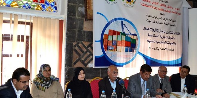الاتحاد العام للغرف التجارية والجمعية اليمنية لحماية المستهلك ينظمان اللقاء التشاوري لرجال المال والأعمال والغرف التجارية الصناعية بأمانة العاصمة والجهات الحكومية المعنية تحت شعار” التهريب والغش والتقليد التجاري وأضرارها على الاقتصاد الوطني واقتصاد وصحة المستهلك